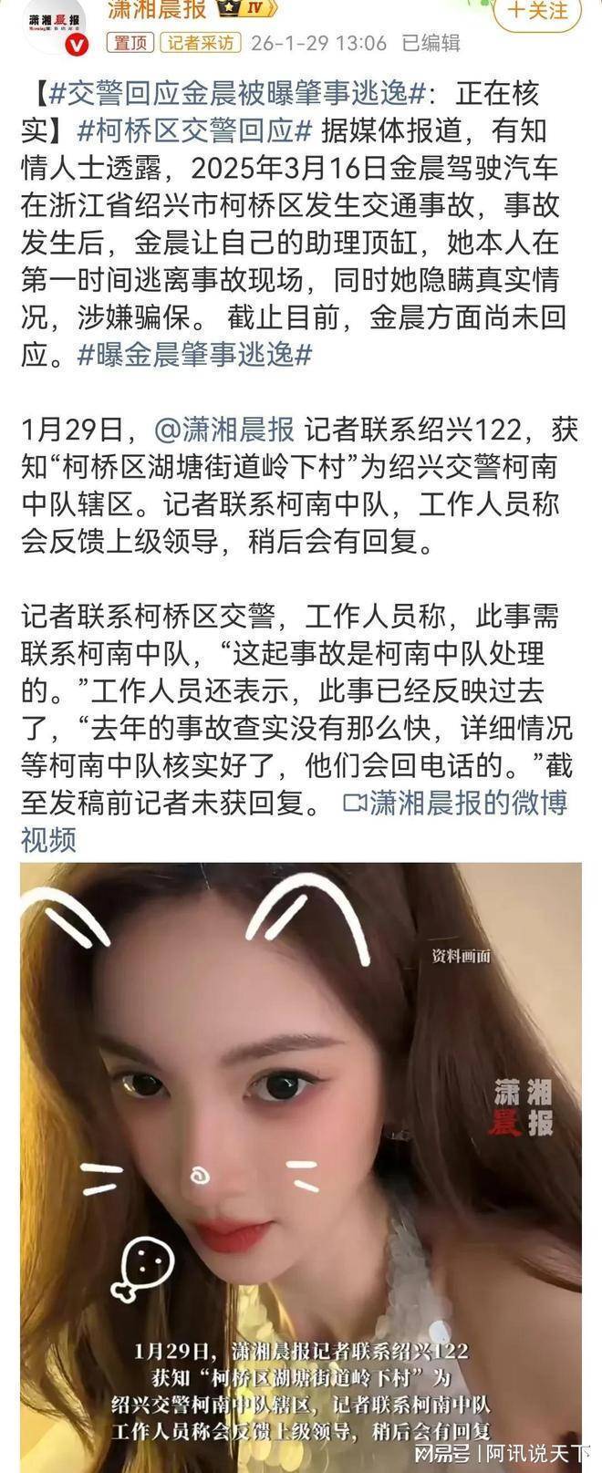 金晨那副精致到犯规的锁骨线条,简直就是上天亲手雕刻的艺术品!可谁能想到,就是这位靠着绝美身材和灵动气质圈粉无数的女明星,最近却陷入了前所未有的风波之中。2026 年开年不久,一场交通事故的传闻如同平地惊雷,瞬间引爆了整个娱乐圈。有人说她肇事逃逸,有人说她是受伤后无奈离开,真相究竟如何至今众说纷纭。但不管事实怎样,这场风波的后续影响已经肉眼可见地席卷而来,让无数粉丝揪心不已!