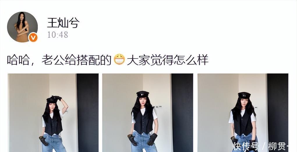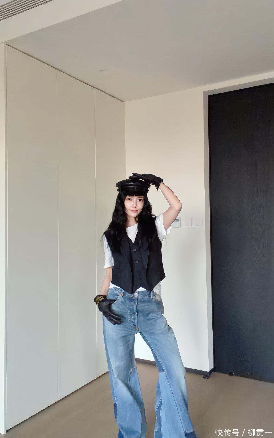 王灿晒杜淳给搭配的衣服!拖地牛仔裤配短袖和马甲,莫名的时尚感
